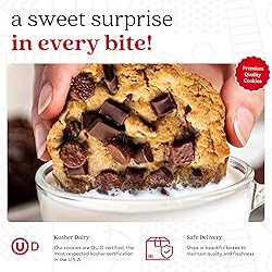 - For those in search of a delicious, fresh, and certified kosher gift for family, friends, or business partners, David’s Cookies Chocolate Chip Decadent Cookie Gift Tin is an exceptional choice. Our cookie gift pack is beautifully packaged in an attractive and reusable tin that is a perfect all-occasion gift idea for anyone with a sweet tooth. The gift tin contains 8 delicious, fresh, soft-baked cookies. Our cookies contain no additional preservatives or additives. They are all-natural and baked fresh daily for that genuine homemade taste — just like grandma used to make. David’s Cookies gift tins contain fresh ingredients. Unlike other popular cookie gift packs that sit around for weeks prior to purchase, David’s Cookies are fresh-baked and shipped the same day directly via two-day air. This ensures freshness and quality and that recipients receive superior soft-baked cookies they’ll love. The packaging is beautifully presented in an artfully decorated, reusable gift tin. David’s Cookies gift pack of freshly baked cookies is a delicious and unique gift idea that your recipient will truly love and appreciate. All orders are shipped two-day air the same day they’re baked so that they arrive fresh and delicious.