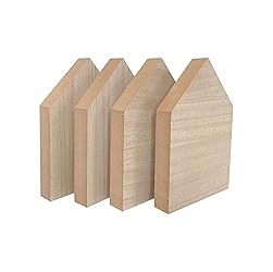 What‘s including: 4 peices of MDF wood house shaped blocks Diemension: size is 5.1 x 7.8 x 1 inches,and thickness 1 Inches Material: made of medium-density fiberboard They are strong and durable and they have a smooth and unfinished wood surface . Elaborately designed with roofline in HOUSE shape add visual interest and texture which is suitable for graffiti. They are perfect setting on a shelf,dinning table or anywhere in the house where you'd like to add a touch of decor. You can also decorate this plain wooden house acccording to your imagination.