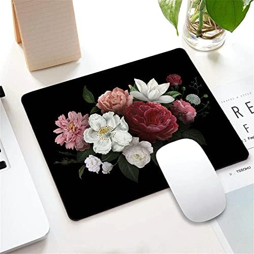 Mouse Pad Peony Bouquet Mousepad Office Decor for Women Men Desk Accessories Black Roses in Bloom Mousepad Non-Slip Rubber Base Mouse Pads for Wireless Mouse, Computer Mouse Pads for Desk