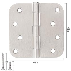 Nickel door hinges 4" rounded corners with 8 holes for front door, cabinet, wooden box. Plain bearing hinges is including 144 free screws for quick and easy installation. It can be rotated 270 degrees. Silver door hinges 4 inch suitable for drawer, dresser, wardrobe. Satin nickel Hinges for doors, such as shower, bedroom, bathroom, living room. Smooth operating plain bearing hinge. Strong sturdy design make these interior door hinges a long lasting. Full Mortise brushed nickel door hinges 4 inch security perfect for apartment, hotel, office, hospital, old school, dorm, hostel, living quarters, nurser school, company, police office/station, shop, factor, library, gym, log cabin, block/frame house, galley, kitchen, etc. Size: 4 inch x 4 inch entry door hinges satin nickel,hinges for doors interior finished nickel.These hinges could be mounted on shed windows, shed hardware, shutters, skylights, vents, flower boxes, etc. For all kinds of outdoor buildings such as sheds, playhouses, animal shelters and more.Total Brushed Nickel Door Hinges: 12 Pack + 6 Pack = 18 Packs The plain bearing hinges size is 4 inch x 4 inch Door Hinges, hinges for doors interior silver. Please see the picture: how to remove a hinge classic pin? Beat the nail with a hammer as shown to remove the pin.