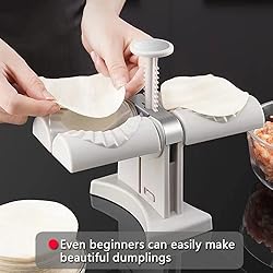 【Brand new design】: Dumpling press It is a very professional design, with a high degree of automation, double-headed pressing design, practical and efficient to make dumplings, save precious time and enjoy DIY more fun for your family. 【Efficient and fast dumpling maker】: 2 in 1, 2 dumpling molds with one tool, it only takes 1 second to form, make 2 dumplings at a time, and automatically drop them on the plate after making, twice as fast as the old dumpling maker, efficient and fast to make delicious dumplings. 【Help you make dumplings easily】: Say goodbye to the trouble and inefficiency of hand-made dumplings, this dumpling maker is easy to operate, just press, and children can easily make dumplings without too many skills, DIY parent-child interaction, use this automatic dumpling The device helps you quickly make beautiful and delicious dumplings. 【Finished dumplings】: Due to the good performance of the new dumpling device, the finished dumplings have better sealing performance, the dumplings are tightly bonded, and the dumplings will not crack during cooking. The contour and edge lines of the finished dumplings are clearer, and the appearance of the dumplings is more aesthetic. 【Food Grade Material】: Made of food grade ABS and 304 stainless steel, no odor, safe and BPA-free, durable. Easy to clean, just rinse with clean water. Use it to start making your favorite dumpling, ravioli, pierogi.