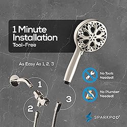 10 SPRAY FUNCTION SHOWER HEAD: SparkPod's Hand Held Shower Head offers 10 unique spray settings, including Power Stream, Relaxing Rainshower & Pulsating Massage. The perfect replacement shower head for all your moods BUILT-IN POWER JET: Our high pressure shower heads have two ultra powerful top-sprays, making this shower head perfect for easily cleaning your bathroom LUXURY SPA-LIKE SHOWERHEAD: Bring the luxury resort into your home & rejuvenate in the indulgent flow. SparkPod's Bathroom Shower Head is made of Premium Rustproof ABS for long-lasting durability! 1 MIN INSTALLATION & 7 UNIQUE COLORS: Install in 1 min, no tools or plumbers are needed! Our universal showerhead comes in unique colors including Luxury Polished Chrome, Black Matte & Brushed Nickel EVERYTHING YOU NEED: This detachable shower head includes a 6-ft stainless steel hose and a durable wall-mount bracket for easy setup. Enjoy a powerful & high pressure handheld shower head with hose, designed for performance and convenience.