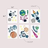 Space Wall Decals – Blast off into fun with this colorful set of universe-themed wall stickers! Featuring planets, astronauts, rockets, stars, meteors, and satellites, it’s perfect for sparking imagination and creating a galaxy-inspired bedroom or playroom. Various sizes – Includes 24 vibrant peel-and-stick elements, from large planets and spaceships (up to 7.87" x 5.9") to smaller stars and meteors. A fun way to transform any wall into a space adventure. Easy to apply - just peel & stick –These galaxy wall decals stick to most smooth or lightly textured surfaces—great for walls, furniture, mirrors, or doors. No mess, no tools! Removable withou damage – Our outer space decals can be removed cleanly without peeling paint or leaving residue behind. Ideal for renters, seasonal updates, or evolving interests. Repositionable & durable – Made from flexible vinyl, these decals are kid-safe, long-lasting, and easy to reposition. Great for interactive decorating and letting kids help design their own space!