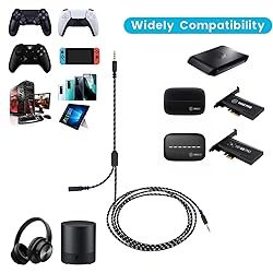 Compatible with Elgato HD60, HD60 S, HD60 S+, HD60 PRO, 4K 60 PRO, HD60 X gaming capture card Works with Xbox One, Xbox Series X/S, Switch, PS5, PS4 and other controllers; Also used for PC, laptop, gaming headphones and other 3.5mm devices Connection: Step-1: 3.5mm(1/8") female jack connects headphone or collar clip on microphone; Step-2: 3.5mm(1/8") 3 poles(TRS) male plug connects HD60 S or other capture card audio port; Step-3: 3.5mm(1/8") 4 poles(TRRS) male plug, connects to Xbox, Switch, PS5, PS4 and other game controllers Y-splitter capture cam party chat link audio cable used for online gaming, broadcast, living streaming, video meeting and other situation Length: 6.6 feet(2 meters), diameter: 4mm; Black mix white; Nylon braided outside, more sturdy and unbreaking-off; Cooper inside; Gold-plated tips
