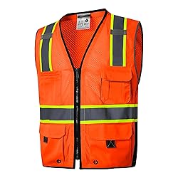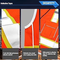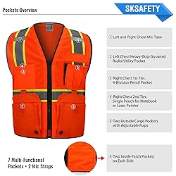 SKSAFETY 10 Pocket Pro Safety Vest - Class 2 Hi Vis Vest with Zipper, Reflective Strips - Orange, XL