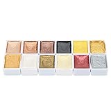 12 Colors Metallic Gouache Paint Set, Watercolor System with Highlight Dimming Effect for Art and Manicure Painting