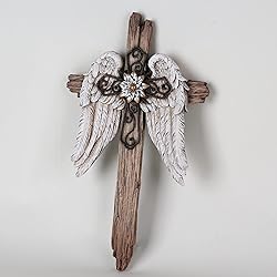 Hand carved and made of quality resin, this wall cross design proclaims your faith in a beautiful way. This unique cross has a realistic appearance of wood, iron, angelic feathers and a lovely floral centerpiece. Item Dimensions 0.9" D x 7" W x 12" H. Item Weight: 1.1 pounds. Will make a special gift to encourage those who are prayer warriors. Perfect sized wall décor gift for a new home, patio or living area. Friends, Family and Pastors will appreciate the comfort this cross will be to their hearts.