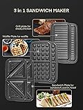 FOHERE Sandwich Maker 3 In 1 Waffle Maker With Removable Plates,1200W Grilled Cheese Maker, 5-gear Temperature Control, Non-stick Coating Easy to Clean, Indicator Lights, Silver/Black