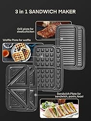 - making it perfect for family breakfasts, lunches, or dinners. 3 in 1 breakfast maker removable plates,family breakfast maker.Whether you're hosting a breakfast station or preparing a meal for the whole family, it can handle the job efficiently. No more waiting for batches to finish – everyone can enjoy their favorite sandwiches and waffles simultaneously. Whether you're craving a crispy panini, a hearty breakfast sandwich, or exploring other culinary delights, it handles them all with ease. This versatility transforms your kitchen into a culinary playground, satisfying all your cooking desires. The 3-in-1 waffle maker is an excellent choice for housewarming parties, Thanksgiving, birthdays, Christmas, weddings, and more. It's a fantastic gift for your wife, mom, friends, college students, and anyone who loves to cook and eat.