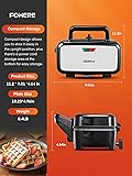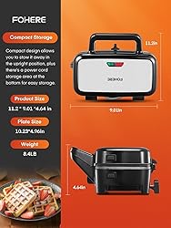 1200W Quick & Even Heating - Breakfast Sandwich Maker with higher power are more efficient and let you toast more sandwiches in less time. You can use them to prepare two hot sandwiches at a time, i.e. four triangular sandwiches.making it perfect for busy office workers who want to enjoy homemade meals quickly. 3 in 1 Waffle Maker - Toaster and Waffle Maker Combo Offers 3 removable grill plates (sandwich, waffle and grill plates). Perfect for classic sandwiches, crispy waffles, juicy steak, slightly burnt vegetables etc. In addition, these three detachable plates are teflon coated, high-quality non-stick coating, water and oil repellent, easy clean waffle maker. Independent ON/OFF Button- Waffle Maker With Removable Plates, 5-gear temperature control, which allows you to choose the right temperature to cook food perfectly. When the knob is turned to "0", the waffle maker is off and you don't need to unplug.preventing your grilled food from being burned; Waffle Maker With Removable Plates can Setting the most suitable temperature to get the best taste food. Large Capacity - If you always make breakfast for the whole family, then the FOHERE sandwich maker is undoubtedly a good choice ! Our Sandwich Maker Panini Press Grill plate size is 10.23*4.96 inches.the panini press sandwich maker can quickly and perfectly toast pocket sandwiches, melts cheese, reheat personal pizza,beefsteak and creates a crispy outer crust for a satisfying meal. Safe & Easy to Use - The Sandwich Maker Removable Plates made of heat-resistant stainless steel, the non-slip feet and the insulated handles ensure safe operation without the risk of burns. LED indicator (red light is always on, preheating or heating is completed, green light is off). Portable Panini Press - FOHERE Panini Press is compact (11.2 * 9.0 * 4.6 in), can be carried and stored horizontally and vertically to save space. This versatile portable Sandwich and Waffle Maker is ideal for travel, office and school. Enjoy delicious food anytime, anywhere with Sandwich and Waffle Maker.