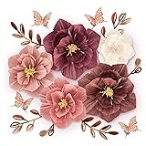 【PACKAGE INCLUDES】You will get 9pcs handcrafted pink paper flowers(2 large 30cm, 2 medium 25cm, 1 small 20cm), 6 pieces rose gold leaves, 8pcs butterflies and some adhesive. A fun variety of dazzling hanging decorations! It can pose different style for background wall decorate. 【PREMIUM MATERIAL】These beautiful paper flowers are made of durable, high-quality, unscented crepe paper. Good for room decoration, and all kinds of outdoor / indoor parties. 【EASY TO USE】The flowers you receive are closed, you only need to take a few seconds to break each petal apart and you will get a beautiful blooming flower. We have some 3M double-sided tape in the package. You just need to stick the tape on the back of the flower/leaf/butterfly. then stick them wherever you like to decorate. Make an impressive flower wall backdrop for birthday parties, baby nursery, sweet 16, or Bridal Shower. 【WIDELY APPLICATION】Perfect Decoration for Wedding, Birthday Party, Bridal Shower Backdrop, Baby Shower ,Holiday Party, Special Events, Nursery Wall Decor, Store Front Window, Commercial Display, Home Window, Room ,etc.