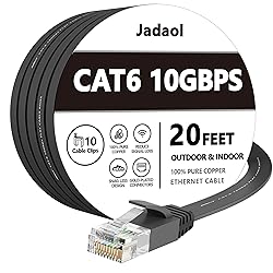 Jadaol Cat 6 Ethernet Cable 20 ft, 10Gbps Support Cat8 Cat7 Network, Flat RJ45 LAN Patch Cable, High-Speed Wired Internet Cable for Router, Modem, Switch, Gaming Consoles, PC, Streaming Devices, Black