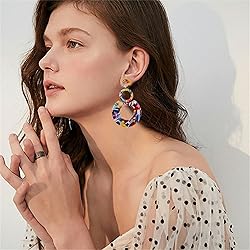 [FASHION DESIGN]: Length:2.5"(6.6cm), Perfect Size for Most of You. The Hoop Earrings Are Made With Stainless Steel Needle and Acrylic, Hypoallergenic and Lightweight, Easy and Comfortable to Wear and Take Off. [LIGHTWEIGHT MATERIAL]: This lightweight acrylic drop dangle earrings is so light and it is so easy to wear and take off. It is made of Eco-friend Acrylic,alloy.Lead-Free, Nickle-Free, can be stored for a long time, not easy to corrosion. never fade and is not allergy for your skin, not harmful for your health. [PERFECT GIFT]: This pair of Bohemian style fashion earrings is perfect as gifts for wife, mom, bridesmaid, and friends on graduation, birthday, Mother's Day, Christmas, Valentines Day, wedding anniversary and etc. [OCCASIONS]:Our dangles earrings, Elegant, Exquisite style makes the Earrings a charming decor for you in many occasions like evening party, important ceremony, Fashion earrings is fit to women [100% After Sales Service]Any question, Please fell free to contact us, We will solve the problem within 24 hours.