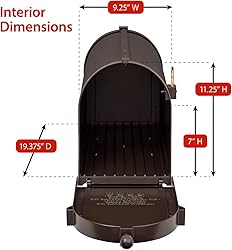 After your order is placed, our friendly US based representatives will send a layout for your approval. SIX COLORS AVAILABLE: 1) Black with Gold Address 2) Bronze with Gold Address 3) White with Gold Address 4) White with Black Address 5) Black with Silver Address 6) Black with White Address BOX DIMENSIONS - 9.625 X 13 X 20.375. Approved by Postmaster General. Manufactured from die cast, high-density aluminum alloy The address Plaque can display up to five, 4.5" numbers