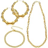 You Will Get: 1 pcs cool pendant Cuban chain necklace, 1 pair of bamboo hoop earrings, 1 pcs gold bracelet, noticeable and metallic luster costume set for your 80s, 90s dress up; The hip hop costume kit will make you outstanding in parties, and it's also suitable for your everyday wardrobe Reliable Quality: they are made of alloy through gold plated, which is reliable for long time use, the polished needle part is easy to slip through without scratching your ear hole; Strong chain and welding will not fall off the pendant Cute Bamboo Shape: this set of accessories has a delicate design, bracelet and necklace metal accessories will help you attract more attention when you wear them; Oversized earrings flatter the shape of your face, with shiny gold and accents Appealing Design of Bracelet: the classical gold chain bracelet is good-looking, you will definitely like it; At the same time, the length of these chain bracelets are adjustable, suitable the most people's wrist, so it will be comfortable for you to wear Wide Application: it is suitable for DJ rapper; You can bring this set of accessories to the party, and it can also be applied to match your daily clothes; It is also an ideal gift for your friend, daughter, mother, yourself, etc