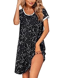 【Material】Nightshirt made of 95% Polyester, 5% Spandex, soft and lightweight to travel. 【Features】Nightdress featuring front pleats detail, short sleeve sleepshirt, round neck, solid color, contrasting trim decor around the neck and the sleeves 【Style】Loose loungewear for any body shape, plus size or petite women, this roomy sleepwear give you an easy and relaxed fit 【Occasion】Soft nightgown for women, breathable and comfy, this short sleep dress is perfect for a day relaxing, night dreaming, lounging sleep or home bedroom 【Attention】Machine Washable, Do not bleach. Ekouaer is committed to offering you the best sleepwear. Please check the size chart in Product Description/Picture before ordering