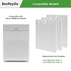 1、HR900 Hepa Filter compatible with Winix HR900 Air Purifier, part number 1712-0093-00 / Filter T and 1712-0094-00 / Filter U, great hr900 hepa filter, fit well and work very good. 2、Easy To Change: The hr900 filter replacement are very easy to install without tool. What you to do just watch how you pulled the one out that came with it so you would know how to put the other one in. our hr900 filter will fit your air purifier well 3、Efficient Cleaning: Our HR900 air purifier filter replacement could clean the hair and dust including cats' and dogs' hair, really does a nice job of cutting the dust and smell down. it will save your time and work very good with your furry family, this hr900 replacement filter has a huge job to do and it does an excellent job. 4、Premium Matrial:These hr900 hepa filter are sturdy, the thickness is good to keep dust, traps larger particles in the air like hairs, help your air purifier work better, does not make a sound. you can only really hear it if you are listening hard 5、Replacement Time: To keep your hr900 air purifier performing at its good, it is recommended to replace the hr900 filter every 4 months. if you have dogs or cats, we advice 3 month is good