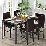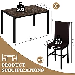 【Upgraded 4-Piece Dining Set】Featuring a reinforced H-frame base, this table set delivers exceptional stability and long-lasting durability. Enjoy years of reliable use and everyday meals with confidence 【Ergonomic Comfort Seating】Dine in comfort with generously padded chairs upholstered in premium PU leather. The high backrest and tailored support promote relaxed seating, ideal for long dinners and conversations 【Modern Style & Elegant Look】This set features a sleek design with a smooth tabletop and contemporary finishes, easily matching various home decors. Its stylish appearance enhances your dining space, making every meal more enjoyable 【Space-Saving Design】Ideal for cozy homes, this compact set fits neatly into kitchens, dining nooks, or apartments. Tuck chairs completely under the table when not in use to maximize floor space 【Easy Assembly Experience】Step-by-step instructions and all tools included for straightforward setup. Share a fun building experience with your family—quick, simple, and hassle-free
