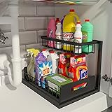 REALINN Under Sink Organizer, Pull Out Cabinet Storage 2 Tier Slide Out Sink Shelf, Kitchen Organizers and Storage, Black, 1 Pack