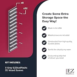 - Build storage that’s uniquely yours with EZStudRack Adjustable Shelf Brackets, proudly Made in the USA by a small business. Your Items, Your Wood – You Supply It to create custom-fit shelves that perfectly match your tools, spices, shoes, or supplies, giving each its own spot in a one-row storage system. This clutter-free design eliminates bulky shelves, keeping items visible and organized anywhere with a wall—garages, pantries, sheds, closets, or basements. What’s Included: [8 EZStudRacks (4 Pair)], plus screws for installation. You supply your own 3/4" thick wood (e.g., 1x4 to 1x10 pine or 3/4" plywood, sold separately) to tailor shelf depth to your items. Install easily with a screwdriver or drill to studs or a wood frame. The easy-to-adjust design lets you reposition shelves without tools, adapting to your needs. Each shelf holds up to 45 lbs (depending on wood and setup) for reliable storage. Why Choose EZStudRack? Personalized Storage: Your Items, Your Wood – You Supply It for shelves that fit your items perfectly. Clutter-Free One-Row Design: Shallow to deep shelves (1x4 to 1x10 or 3/4" Plywood) keep items in place and accessible. American-Made Quality: Support a small business with durable, locally crafted brackets. Versatile DIY Solution: Organize garages, pantries, sheds, closets, or any wall space with ease. Get Started: Source wood at your local hardware store. Visit our website for a free Your Items, Your Wood guide to selecting wood for your custom-fit shelves. Build organized storage with EZStudRack today!