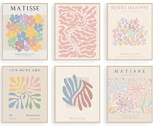 【Trendy Danish Pastel Posters】 The Size of the danish pastel Matisse prints is: 8x10inch (20x25cmx6pcs). The Matisse wall art designs in light pastel colors add a sophisticated and elegant touch to your interior and will make a wonderful wall decor to embellish your home. 【Danish Pastel Room Decor Aesthetic】The Danish Pastel Poster can easily mix and match different home styles to create an elegant and cozy vibe to any space, like living room, aesthetic bedroom, kitchen, bathroom, dining room, office, hotel, restaurant, or any other occasion. 【Durable & Waterproof Canvas Wall Art Prints】The modern abstract pastel prints are made of high-quality canvas material to ensure durability, and we print with high-quality inks, never fade over time. All Process and Materials are created to only the highest standards. (Please note that our aesthetic bedroom poster do not contain picture frames!) 【Meaningful Gift for Your Loved One】 The minimalist Matisse Art posters and prints are the perfect pieces to complete your new home’s decor, and it can also be as gift for Christmas, Birthdays, Father's Day or Mother's Day, Thanksgiving Day, or Valentine's Day etc. 【EASY TO USE】 You can select whether want to straight stick them on the wall, or hang these posters with clips and framed on wall. And it is easy to create an artful collage poster or gallery wall. It is able to decorate bedroom, study room, living room, office, dormitory, classroom, corridor and so on