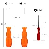 - 3 Pack Gamebit Security Screwdriver, 3.8mm and 4.5mm Security Screwdriver and Triwing Screwdriver for Super Nintendo, SNES, NES, N64, GameCube and GameBoy Specification: Color: Orange & Red Length: 2.5mm: 4.3 Inch 3.8mm: 6.1 Inch 4.5mm: 6.1 Inch Material: Metal and Plastic 2.5mm Tri-wing screwdriver is for opening Wii, NDS, NDSL, DS Lite, GCN, GBA, GameBoy Advance 3.8mm Security Screwdriver is for opening Super Nintendo Nintendo 64 GameBoy Original GameBoy Color Sega Master System Sega Genesis 4.5mm Security Screwdriver is for opening Nintendo NES Top Loader (NES-101) Super Nintendo Full Size (SNES-001) Super Nintendo Miniature (SNES-101) Nintendo 64 Nintendo GameCube Sega 32X Sega GameGear Sega Nomad Sega Master System Sega Genesis Package includes: 1 x 3.8mm Security Screwdriver (Orange Color) 1 x 4.5mm Security Screwdriver (Orange Color) 1 x 2.5mm Triwing Screwdriver (Red Color)