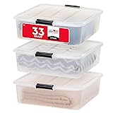IRIS USA 33 Qt Plastic Under Bed Storage Organizer Bin Container with Secure Lids and Durable Black Buckles, Multi-Purpose for Clothes, Shoes, Clothing, and Bedding, Short, Clear, 3 Pack