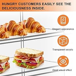 Plastic 【Clearly】Bakery display case has a beautiful elegant appearance. Transparent acrylic material shows your cake very clearly and has good visual effect which allows hungry customers to easily see the deliciousness inside. 【Easy Assembly】 This acrylic display case is easy to assemble. You are free to disassemble. 【Easy to Clean & Use】 It has 4 tiers, and each has a door. When you use it as a retail display case to display your items, you can just open up the door, which is also very convenient for cleaning. 【Wide Application】It has strong structure and is well made. You can use it as a retail display, Works in restaurants, deli’s, convenience stores, gas stations and coffee shops or counter in your sandwich shop. To show many different products like cake, cookies, donuts, candy, cupcakes, pastry, bread display in your bakery. Or home collectors for figurines, coins, sports memorabilia, weapons, model planes, makeup and more. 【Lightweight】The size of this pastry display case is 19.3x9x19.7inch (49x23x50cm), which is light and convenient for movement, handling and transportation.