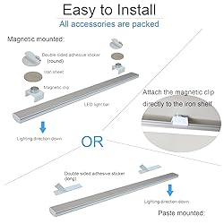 Touch Control and Dimming : The plug in under cabinet lights Built-in led touch sensor (Blue ready light is always on), just touch the spot can simply turn on/off; long press to adjust the brightness you need ( range 8% to 100%). it has a memory function that automatically saves the brightness you last set, (turning off the power will reset). Bright and Energy Saving :17 inch led light bar has 600 lumen but only 6W, give you a bright and cozy lighting area and save you money, is perfect for your kitchen cabinets, counter, shelf, closets, over sink, bookcase, desk, work table etc. Safe to use : The plug in under cabinet lighting come with a UL listed quality 5V USB power adapter, 5feet USB wire allows you to use a variety of ways to power the light, can be connected to a computer, mobile power, car power.Aluminum housing ensure the good heat dissipation and long lifespan. Easy To Installation: Just take 1 minute to installation, Used the included magnetic clips and double adhesive stickers, you can install the under counter lights on your cabinet and take it off whenever you need,No damage to the furniture; all accessories are packed. Ultra Thin LED Cabinet Lights for Kitchen:The thickness only 0.23 inches, is thin enough to hide perfectly under your cabinets, counters or display cases,make your desktop look very neat and clean.