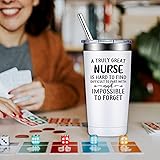 Funny Nurse Gifts: This cute Nurse tumbler is sure to put a smile on your favorite nurse's face! The nursing graduation thank you retirement goodbye gifts with saying: "A Truly Great Nures is Hard to Find" screen printed on the front Nurse Gifts for Women: This tumbler with funny saying that can make fun gifts for women, nursing students, her, assistants, instructors, or future RN to show your appreciation for them Premium Material and Bpa Free: Crafted with 18/8 food grade stainless steel these tumblers are durable, unbreakable, sweat proof, rust resistant Used Indoor and Outdoor: Our Tumbler is suitable for any indoor or outdoor places. The tumbler can help maintain your drink’s temperature for a long time, which makes the ideal companion for alcoholic, cocktails, water, tea Double Wall Vacuum Insulated: Made only from the highest quality premium 304 18/8 food grade stainless steel, highly resistant to rust and break. Can help maintain your drinks temperature for a long time and protects your hands against the temperature