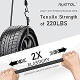 Heavy Duty Bungee Cords with Hooks: The super elastic cords are made from a UV-resistant, cross-woven rubber and latex blend which can withstand UV rays and weather damage, will not become thin or brittle over time, the hooks are constructed with durable, anti-corrosion metal and covered in a non-scratch coating to protect them from scrapes, ensure long-term use. Adjustable Bungee Cords: 4 pack 40 inch long bungee cord hooks with high elasticity that can be stretched up to 100 inch, the length can be adjusted to different length according to the size of the item from 20inch to 40inch. The adjustment is not that complicated, please refer to our video and our picture 3, you'll find it very easy. Multifunctional bungee straps: These black bungee cords with hooks are widely used in all kinds of occasions indoor and outdoor, such as bike rack, bicycles, cars, clotheslines, tent poles, roof racks, trailers, canoeing, kayaking, securing camps, tents, tarps,and more. Beyond the obvious applications of securing heavy loads to the roof of a car or bed of a truck, they are also helpful for keeping luggage, tools, and other things reliably in place. Wider Flat Design: The long bungee cords with hooks are designed with exclusive wider flat cord which spreads over load and distribute weight evenly, preventing injury caused by falling objects. Increase the safty of indoor and outdoor life while bring more convenience for your cargo transport needs.It has stronger carrying capacity and can meet your all kinds of higher requirements. Reliable Performance: Trust these high-quality bungee cords to securely hold your belongings during transportation or storage, ensuring they remain firmly in place. Whether you're an outdoor enthusiast, DIY enthusiast, or simply need dependable cordage, these bungee cords are up to the task.