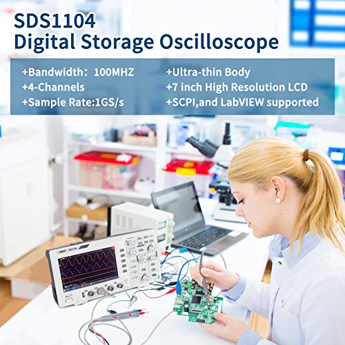 OWON 100Mhz Digital Oscilloscope SDS1104, 7 inch LCD Digital Storage oscilloscope Support SCPI, and LabVIEW,1GS/s 4 Channels Standard Decoder