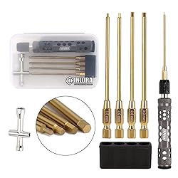 PACKAGE INCLUDES-This Hex Screwdriver Wrench Set includes 4 Hex Tips (1.5 mm 2.0 mm 2.5 mm 3 mm), 1 Screw Driver Handle with 1/4" Drive, and 1 Cross Wrench(4 mm, 5 mm, 5.5 mm, 7 mm), and is packaged inside of a carrying case for easy tip management and storage PRECISION CUT TIPS-The Replaceable Tips are HSS Steel tip, super hard, distortion resistant, that provide an exceptional fit with the fastener, also helps to protect the steel from corrosion ULTRA LIGHT WEIGHT SURE-GRIP HANDLE DESIGN-With machined relief holes and cross hatch knurling, the knurled handles offer awesome grip, you can still use it properly even when you’re sweating away in the summer sun PRODUCT SPECIFICATION-Total Length: Approx 8.19"/208 mm; Handle Length: Approx 4.76"/121 mm. Tip size is laser etched for easy identification. Standard 1/4" drive for compatibility with common electric power tools A MUST HAVE FOR RC HOBBY-The INJORA Hex Driver RC Tool Kit Set, perfect for rc traxxas car, rc boat, rc helicopter, rc quadcopter, multi-axis FPV racing drone and etc.It will add a serious upgrade to your workbench