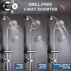 - Egretshower is a comprehensive manufacturing enterprise specializing in R&D, production, sales and service of showers, hoses and other related products.High-quality products and services are consistently favored by domestic and foreign customers. Products have obtained certifications from Europe, America, Southeast Asia and other countries. Our products are dedicated to providing you with a comfortable shower experience and a natural spa experience at home. A variety of shower heads are available for you choose, freeing up the stress of your day!Egretshower High Pressure Handheld/Rain 82-mode 3-way Shower Head Combo with 27.5" Adjustable Drill-free Stainless Steel Slide Bar. Equipped with advanced 4.7”of 10-setting Handheld Shower and 5.5”of 9-setting Showerhead,each mode can bring you a different shower experience, including rain, massage, mist, sweep, multiple combination modes.Rotate the handle on the shower panel to switch easily and freely!Upgraded pressure design makes full use of the air and internal channels, so that the water pressure of each outlet is evenly distributed, It ensures your body is fully and evenly moisturised for a luxurious shower.Made of eco-friendly ABS material, not easy to rust, ensure the shower head surface is not easy to scratch. Unique power wash mode design keeps you away from bathroom cleaning problems, just press the button on the back of the shower to help you clean dirt or stubborn substances in toilets, mops, tiles, bathtubs and bathroom corners. Also ideal for pet bathing!Use each shower separately or both together!Choose from different combined water flow patternsFor Easy Reach and Added Mobility: Extra-long Premium 60 inch (5 ft) Super flexible stainless steel hose with brass hex and brass conical nut for easy hand tighteningTools-free Installation: Connects in minutes to any standard overhead shower arm, no tools required.Lifetime Limited Warranty is provided by egretshower.Package Includes:1 x pc Fixed Shower Headr1 x pc Handheld Shower Headr1 x pc stainless steel drill-free sliding bar with slider1 x pc 6" Shower Arm with Flange1 x pc stainless Steel Shower Hose1 x pc Teflon Tape1 x pc Installation Munual4 x pc Washer