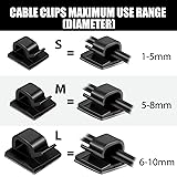Adhesive Cable Clips: made of quality material, these decorative adhesive hooks are sticky, easily peel off backing, which make our adhesive wire clips sturdy and durable; Our cord clips package comes with 100 pcs cable clips, you can use this to organize your cable, cord, wire or hanging string lights according to your needs Wide Application: these cable management clips are wildly applied for cable organizing, suitable for wire diameter with in different size: network cable, TV coax cable, USB cords, cell phone chargers, ethernet, electric wires, dash cam in car, home and office; They are ideal for people who want to have an almost no visibility of cables around the house Functional to Apply: our adhesive cord clips are not only for cable management cord organizer, but also help you decorate your Halloween, Thanksgiving, Christmas lights easily; Those ethernet cable clips also work nice on table, metal, glass, wood surface Easy to Use: simply peel off the backing and stick the wire clips for electric wires on a flat and dry surface without any screws or tools, our wire holder clips will organize your mess wires neat and tidy; Easy to remove without any residues and breakage, suitable for people who are constantly on the go and don't have time Note Before Use: make sure to clean the mounting surface before you use the wire organizer clips, stick it on and press firmly for 30 seconds, and use them after 24 hours for maximum adhesion; If your wires or light strings are very long, try to use as many wire clips as possible to reduce the distance between wire clips and maintain long term use