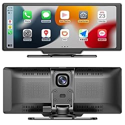 Wirelsee Apple Carplay and Android Auto: You can use Apple Carplayer or Android Auto in the car without having to connect the mobile phone via cable.You can access the music, navigation, messaging and other functions of your phone while safe driving. It can completely replace the cell phone while driving. Never worry about heating and battery damage caused by using your mobile phone for navigation for a long time. Bluetooth 5.0 Make driving safer:The Bluetooth hands-free system and built-in clear mic allows you to answer the phone while driving, without having to hold your phone all the time, and support voice control at the same time, so you will always keep your eyes on the road ahead, ensure that you reach your destination safely. Auto Loop Recording, 2 Split Screen: Front and rear dual camera. Full-color HD camera, low-light night vision. The front and rear cameras have DVR recording function, which supports simultaneous recording and automatic loop coverage. Support 2 split screen. Voice Control Function: A voice control function with several simple commands. Turn on the front camera/turn on the rear camera/turn on both cameras/turn on the monitor/turn off the monitor, etc. In the black screen state, you need to issue the wake-up command before other commands. Sound Synchronization, Built-in Speaker: The monitor is built-in speaker, which can emit sound. When the FM frequency of the display is adjusted to the frequency of the car radio, the sound played by the monitor can also be sent out on the car radio. Note that when the monitor's FM logo is on, the monitor's own speakers cannot produce sound. The FM switch needs to be turned off. This function is only used for sound transmission, the monitor cannot listen to FM stations.