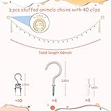 LONCHDAN 2PCS Stuffed Animals Storage Chain Organizers 80" Cotton Hanging Storage Chain with 40 Metal Clips Stuffed Animal Display Holder Chain for Wall or Corner Nursery Play Room