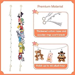 - 2Pcs Stuffed Animals Storage Chain 80" Hanging Organizer with 40 Metal Clips Stuffed Animal Display Holder Macrame Stuffed Animal Chain Decor Hanger for Nursery Playroom Wall Corner