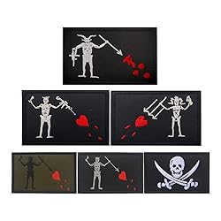 - AliPlus Blackbeard Flag Patch Edward Teach Patch Pirate Jolly Rodger Flag Patch Tactical Morale Patch Applique Fastener Hook and Loop,it is a perfect clothing personality accessory, Hook backing for attachment to Tactical Hats and Gear,It can be pasted or sewn on clothes, backpacks, hats and other apparel textiles., hats and other clothing equipment. Show the unique you!Embroidered PatchesReflective PatchesLuminous Patches Glow in The DarkLaser Cut Patch[Flag of Blackbeard]During the Golden Age of Piracy, Blackbeard (c. 1680 – 1718) was one of the most infamous pirates on the seas.Flag of Blackbeard:A black banner with a horned skeleton holding an hourglass in his right hand and a spear in his left, using the spear to poke at a red heart dripping three red drops of blood.The design of the flag consisted of a horned skeleton raising an hourglass "toasting the Devil" in its right hand.In the skeleton's left hand, it held a spear pointing towards a red heart which had three drops of red blood below it, supposedly to signal that no quarter would be given.The other design that Blackbeard most likely used more than this one has the most famous pirate flag design of all time – a black background, white human skull and two crossed bones below it. This pirate flag design was originally popularized bu the pirates such as "Black Sam" Bellamy and Edward England.【Product use and after-sales】Use: Paste directly where there is a velcro wool surface, if not, please sew on the wool surface we presented and stick it. It can be replaced at any time.After-sales service: We uphold the service principle of "quality first, customer first", and 100% after-sales service. If you are not satisfied with the product, we 100% support returns and refunds to protect your consumer rights and make your purchase worry-free!