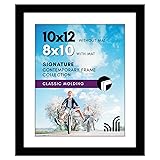 Americanflat 10x12 Picture Frame with Shatter-Resistant Glass - Use as 8x10 Frame with Mat or Display 10x12 Photo Without Mat - Signature Collection - Picture Frames for Wall Display - Black