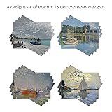 RainCaper Fine Art Keepsake 5x7 Blank Stationery Claude Monet Greeting Note Cards With Decorative Envelopes, Gift Boxed Set of 16 | 300 GSM Cardstock (Monet Boats)