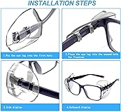 - GLASSES SIDE SHIELDS Protect your eyes at the crucial moment Specifications: Corlor: Clear Lens Thickness:1-2mm Size: 48*45*25mm Light Weight Light weight glasses side shields personal protection you can wear all day and fit your glasses. Soft & Safe TPU Material The items are made of flexible TPU polyurethane which is friendly to humans. They will provide the softest care for your eyes. Function Protect your eyes from wind and blown particulates, minimizes injuries from wind blown particulates, suitable for outdoor wear. Installation Steps: 1.Put the eye leg into the first and second hole. 2.Then pull in glasses side shield. 3.Repeat the above steps to install the other one. 4.Installation complete. Note: The eye glasses side shields are marked " L " and “ R ”, the '' L '' fits glasses left leg, the " R " fits glasses right leg. Fit for eyeglasses bracket width is less than 12 mm. 3 Pairs x Side Shields for Glasses
