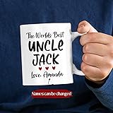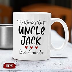 - Custom Mug Gift for Best Uncle with Name - Personalized The World's Best Uncle Coffee Cup - Uncle Tea Cup - Gift for Great Uncle - Customized Uncle Present - White Ceramic Mug 11oz 15oz HIGH QUALITY CERAMIC MUG: All of our coffee mugs are made of professional grade ceramic, ensuring they are tested for durability and sharpness on each product. Microwave and dishwasher safe for your convenience. Design is printed on both sides of the mug so that both lefties and righties can enjoy it. Employing the latest in print technology create the designs are high quality and will not peel off or fade away. EASY TO USE: C-shaped handle & thick and clean cup wall, comfortable to hold. This perfect sized coffee mug is available in 11oz or 15oz sizes. This novelty ceramic coffee mug is a useful gift to coffee lovers or tea drinkers. Perfect for daily home use, travel or more at the office. MAKE A BEST MUG GIFT: This novelty white uncle coffee mug is perfect mug gift for anyone on any occasion. This coffee mug make unique and novelty mug gift for Uncle, Stepuncle, Uncle-in-law, Bonus Uncle, New Uncle, Husband, Men or your loved ones. Perfectly suitable for many occasions including: Father’s Day, Christmas, Birthday, Retirement, Thanksgiving, Valentines, New Year, Appreciation or any occasion. ☞ If you have any questions or concerns about the purchase, please do not hesitate to contact us.