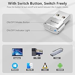 2 JIGGLER MODES FREELY SWITCH: Slight Jiggler Mode: move the mouse pointer slightly 1-2 pixels back and forth from left to right, which doesn't affect the normal use of mice. Random Jiggler Mode: randomly move the mouse pointer irregularly RECOGNIZED AS A TRUSTED DEVICE: When this mini mouse jiggler is connected to the computer for the first time, it is recognized as a "USB Composite Device" by the computer, rather than any unknown/unsafe device, you can use it with confidence METAL MATERIAL WITH SWITCH BUTTON: This mouse jiggler is made of aluminum alloy, which is more upscale and sturdy than plastic. With ON/OFF/Modes Switch button, "Short Press" to turn on/switch between the 2 modes, and "Long Press" to turn it off NO SOFTWARE INSTALLATION REQUIRED: This mouse jiggler is plug-and-play, no need to install any software, just plug it into the computer and it will turn on automatically, just "Long Press" the button to turn it off, avoid frequent unplugging WITH WIDE APPLICABILITY: It can be used for online reading, games online, remote connection, etc. It keeps the computer active, thereby keeping your Microsoft Teams, Skype, Webex, Lync, etc. "Green". Compatible with Windows, Mac OS, Android, etc