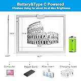 【 Built-in Stand and Magnetic Clip 】 The built-in stand is hidden on the back of the A3 diamond painting light pad, foldable and 6 levels adjustable. The built-in stand and the magnet clip on light pad can hold paper and diamond painting canvas easily, you can unfold the stand when you are doing diamond painting or vinyl weeding to your most comfortable posture. Lightweight design brings everything you need together and you don't have to pay for any extra any more. 【 Battery Powered and USB Powered with Type-C Port 】 This A3 light box tracer allows you to enjoy the convenience of using it anytime anywhere with the built-in battery.Works for around 5 hours after charged 2 hours at a time. Both battery mode and charging mode are applicable. 【 3 Light Colors Mode and Stepless Dimmable 6 Levels of Brightness 】 By smoothly touch the control to change the lighting mode to white, warm yellow or warm white. Each lighting mode has 6 adjustable brightness to choose from, easy control by long pressing the button to make the brightness to suit your artwork in different lighting conditions. This led tracing board makes every diamond painting canvas and paper look clearer. 【 A3 Size, Large LED Light Pad 】 The dimmable LED Light Box has a working area 15.2" * 11.9", overall dimension including black frame is L 16.7’’ x W 13.5’’ x H 0.47’’. large enough for both big and small diamond painting projects, HTV vinyl weeding, Drawing, Scrapbooking, Tatoo Trasferring and so on. It keeps slim and compact due to our unique design, good to use on the go. 【 Wide Application 】 This A3 tracing drawing pad is large enough for diamond painting, weeding vinyl, stencilling, 2D Animation, calligraphy, embrossing, scrapbooking, tattoo transferring, sketching, sewing projects, stainde glass, quilting and so on.And it also a good gift choice for Christmas, Birthday and Holidays for your friends, kids and your family.