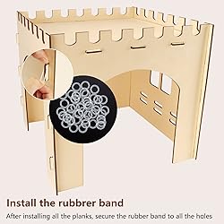 [Extral Large Size]: After installation, the size is about 43.8 x 13.6 x 26.9 inch / 111.2 x 34.5 x 68.6 cm, enough space for the bunny rabbits, guinea pigs, chinchillas, ferrets, cats, hamsters and various small animals to play, hide, rest and sleep in it [Double-layer Design]: Connect 4 houses to form a tunnel, you can also assemble 4 separate houses, which are divided into 2 floors, and you can also exercise the rabbit's bouncing ability during use. Each house in the castle can bring something different to animals The sense of use, the space is large, and it provides endless fun for small animals [Easy to Assemble]: The entire rabbit playhouse is designed with assembled style. with rubber bands and easy to install. The castle comes with instructions, simple to operate and disassemble, store, and clean. Consists of 4 small houses, and is spacious enough for them to move around freely while also keeping it highly breathable [Premium Material]: Made of poplar plywood, a safe and harmless material, processed from natural wood, provide pets with a natural sense of security. Rabbits, guinea pigs, and other tiny animals also can live in the wood castle house [Suitable for Rabbits and More]: Suitable for all kinds of small animals, rabbits, cats, and hamsters, provides different feelings to your pet and adds endless fun for them. It also can be a perfect gift for your pet. Let's build a castle for your lovely pet