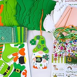 - Fun St. Patrick's Day Craft Project for Kids and Adults:These cute St. Patrick's Day craft kits are a great combination of cute gnomes and lucky leprechauns and can keep both kids and adults entertained for hours! You can decorate your own Irish gnomes with a green leprechaun hat and glittery shamrocks, make them alive with a big nose and long white beard, and lastly give them a cute Irish accent to hold! With enough materials and simple instructions for 24 pcs leprechaun gnome ornaments, these St. Patrick's Day crafts are great for the classroom or as a kids' activity at home or at a St. Patty's party.A Festive Addition to Your St. Patrick's Day Decorations:These St. Patrick's Day crafts for kids are the perfect way to get creative and create festive St. Paddy's Day decorations! Your children will be able to show off their creations at home or in the classroom. Display these St. Patrick's Day gnome ornaments on the seasonal tree, windows, wall, mantel, doorknobs, children's room door, ceiling, hallway, or places that everyone can admire to increase the festive atmosphere. You can turn them into bookmarks and gift tags, string them together and hang as a garland, or use them to embellish gift packages, kids' backpacks, and picture frames.Share the Luck of the Irish with Your Loved Ones:Share the luck of the Irish with your loved ones! Hand these DIY leprechaun gnome ornaments out to your friends, family, co-workers or include them in your St. Patrick's Day party favor bags and gift baskets for a little Irish luck. You can also use them as classroom rewards or prizes for the students.
