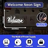 Welcome Neon Sign Welcome LED Neon Light Wall Art Sign Light up with ON/OFF Switch Neon Light for Business Storefront Home door Window Glass Door Shop Store Florists Bar Salon Cafes Restaurant Pubs, Housewarming & Birthday Party Gifts(22'', White)