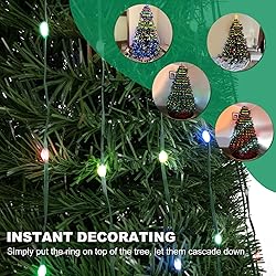 【200 LED Christmas String Lights】-This string light is 65 ft long with 200 LED bulbs. Consists with 10 strands string lights, and each one drops 6.5 ft. Plug cable length:10ft. IP65 Waterproof Light is perfect for indoor&outdoor Christmas trees. Light up your home or backyard with this festive Christmas light display! 【Instant Decorating!】- No need to string lights throughout the tree, all of the light strands are attached to a ring. Simply put the ring on top of the tree, take the twist ties off the light strands, let them cascade down, plug it in, and instant lights. Also, easy to put away and store. The power lead length: 10ft 【Multi-Function App Control】-APP to control LED string lights, smarter than remote controller, including 120 modes. You can freely set all kinds of color by DIY colors and camera color picker. In addition, Our lights have a built-in beat sensor, and you can add the music to your phone. Let the light dance with the sound control. 【Safe Waterfall Tree Lights& Easy to Install】-Low voltage plug with UL certified to ensure safety use without worrying kids get an electric shock while playing near the lights. Easy to install, just hanging the top on an exterior wall, tree or eaves then you can drape or just make the 10 string lights as you want. 【Perfect Christmas Gifts& Decoration Choice】-The waterfall tree lights can be used outdoor lighted tree ornaments, Christmas yard decorations, outside Christmas decorations lights, Christmas snowflake lights outdoor, hanging Christmas tree outdoor, spring decoration outdoor, also perfect Christmas gift for family, lovers, and friends.