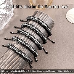 If you want to wear words that matter to you on your wrist or send a loved one a secret message, then BTYSUN got you covered. Morse code bracelets definitely are cool gifts idea for men you love with wish card. Son Gifts Size: Adjustable Morse code bracelets for men,durable and comfortable to wear. Morse code bracelet is a great choice as I love you gifts for him, birthday gifts for son, Christmas gifts for son, leather bracelets for son, Morse Code bracelets for men, mens bracelets,son birthday gift, anniversary gifts for son, graduation gifts for him Mens Bracelets Material:Code bracelets are made of genuine leather. Will never tarnish, rust, break. Mens bracelets, braided leather bracelets for men, Morse code bracelets for men, bracelets for Son Bracelets Intended Use: Get the Morse code bracelet as birthday gifts for son, mens bracelets, bracelets for men, I love you gifts for him, son bracelet, gifts for men, appreciation gifts for men. Morse code bracelets are ready for giving on graduation, birthday, father's day, anniversary, retirement, Christmas or any other important occasion. What You Get: Men gifts (Morse code bracelets) with gifts box, wish card, velvet bag, friendly service. Any question or need, pls let us know through Amazon.